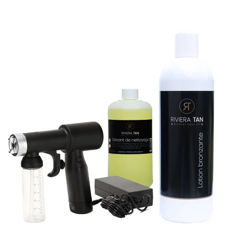 Ce qui distingue le kit MiniTan d'un simple pulvérisateur, c'est la qualité exceptionnelle de la formule qui l'accompagne. Nous avons inclus dans ce kit 1 litre de notre Lotion Tanning Riviera Tan pour garantir une expérience complète dès la première utilisation.